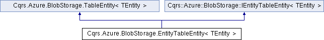 Inheritance diagram for Cqrs.Azure.BlobStorage.EntityTableEntity< TEntity >:Public Member Functions | |