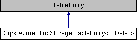 Inheritance diagram for Cqrs.Azure.BlobStorage.TableEntity< TData >:Protected Member Functions | |