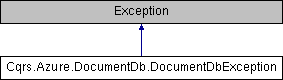 Inheritance diagram for Cqrs.Azure.DocumentDb.DocumentDbException:Public Member Functions | |