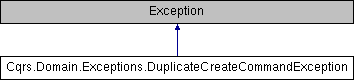 Inheritance diagram for Cqrs.Domain.Exceptions.DuplicateCreateCommandException:Public Member Functions | |