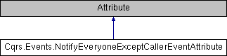 Inheritance diagram for Cqrs.Events.NotifyEveryoneExceptCallerEventAttribute:An IEvent<TAuthenticationToken> that should be sent to all connected people except the person who was authenticated when sending the request via SignalR.