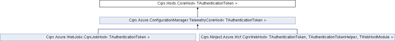 Inheritance diagram for Cqrs.Hosts.CoreHost< TAuthenticationToken >:Public Member Functions | |