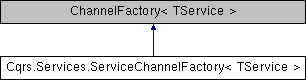 Inheritance diagram for Cqrs.Services.ServiceChannelFactory< TService >:Public Member Functions | |