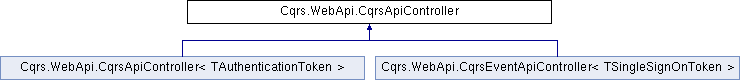 Inheritance diagram for Cqrs.WebApi.CqrsApiController:A ApiController that expects the ISingleSignOnToken.Token to be sent as a HttpHeaders with a key whose name is defined by the System.Configuration.ConfigurationManager.AppSettings "Cqrs.Web.AuthenticationTokenName", in accordance with OAuth specifications