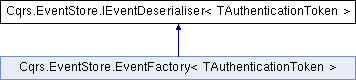 Inheritance diagram for Cqrs.EventStore.IEventDeserialiser< TAuthenticationToken >:Public Member Functions | |