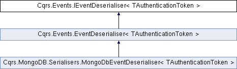 Inheritance diagram for Cqrs.Events.IEventDeserialiser< TAuthenticationToken >:Public Member Functions | |